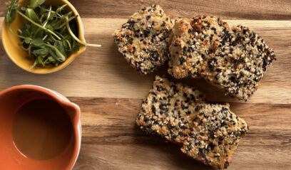 This Sesame crispy tofu is coated in sesame seeds and is a delicious vegetarian or vegan dish that also features some simple basmati ‘fried’ rice with a tamari, lime, maple sauce. I used aquafaba here to help with the binding of the sesame seed coating. You can get aquafaba from a can of chickpeas. And use the chickpeas in my Kale & Quinoa salad. Or Turmeric Soup. Or feel free to toss some into this dish too!